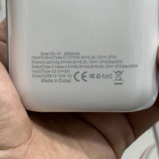 Amazon Lot Imported 20000mAh 120W Super Fast Charging Portable Power Bank With Free with 2-in-1 Cable