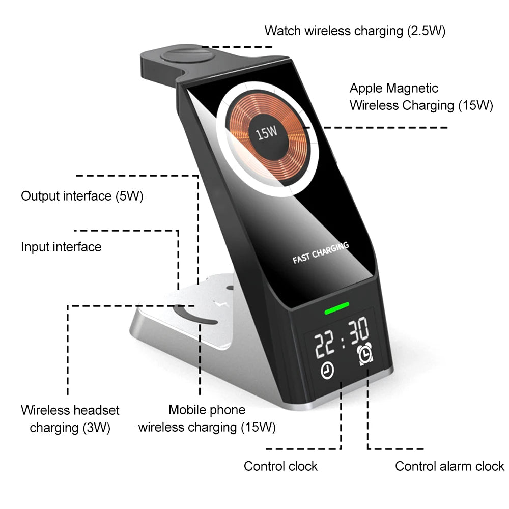smart six in one multifunctional magnetic transparent wireless charging/Apple phone/watch/headphones at the same time.