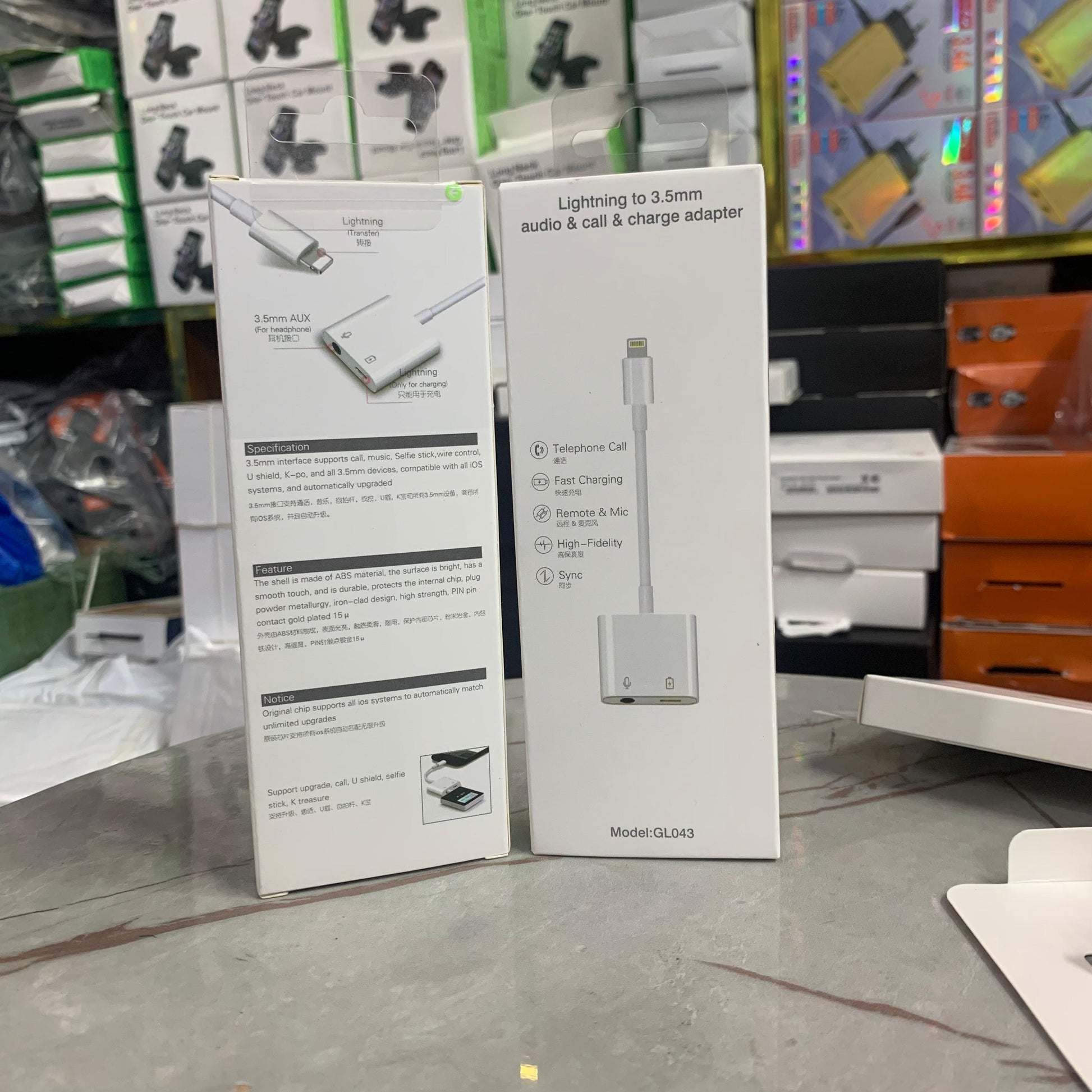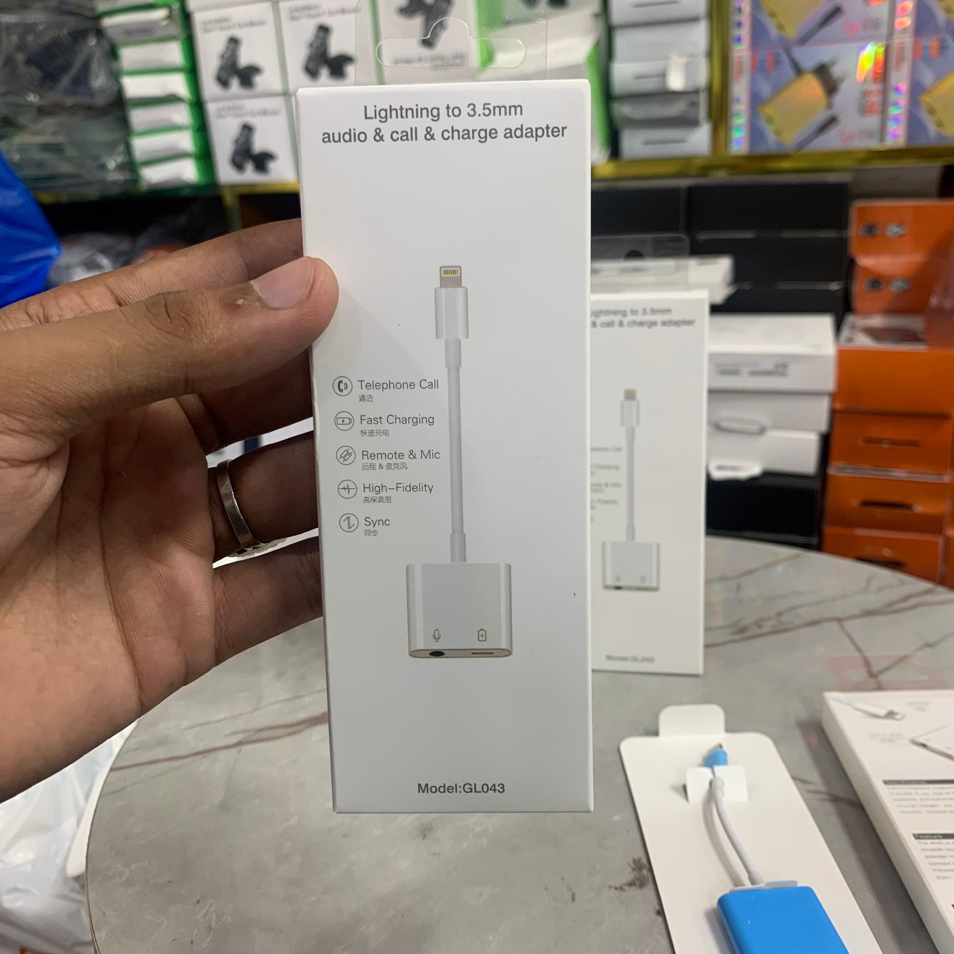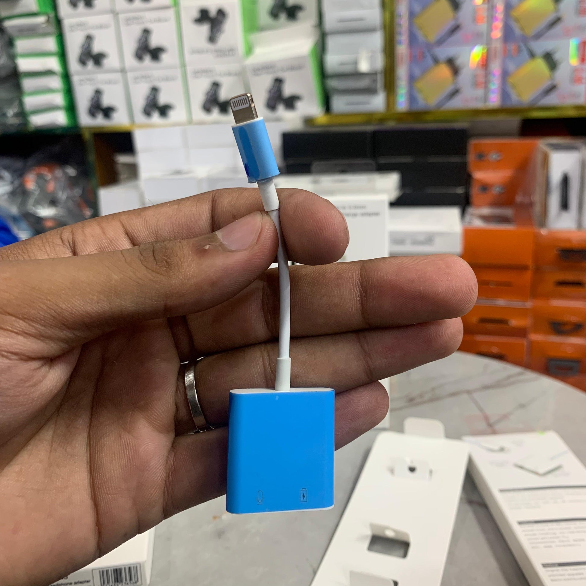 - Port: Lightning to Dual lightning for charging and earphone
